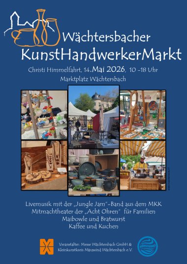 Am Himmelfahrtstag, den 14. Mai 2026, findet der 34. Kunsthandwerkermarkt von 10.00 bis 18.00 Uhr statt. Das Rahmenprogramm startet um 14.00 Uhr.