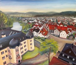 Die Künstlerin schenkt einen Blick aus der Vogelperspektive über die Schloss und Altstadt.