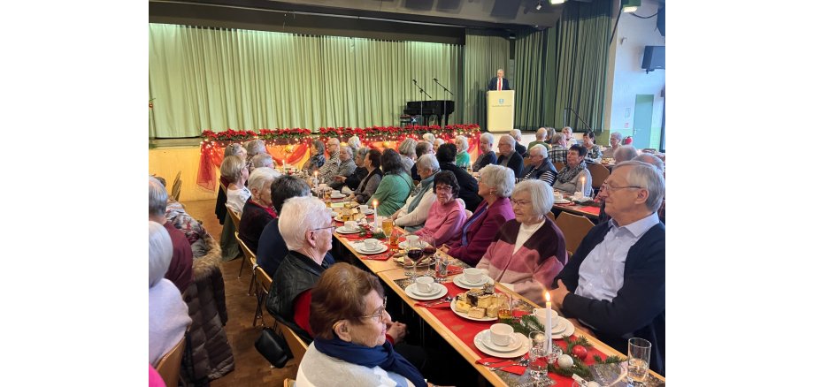 Mit großer Freude begrüßte Bürgermeister Andreas Weiher am vergangenen Sonntag die zahlreich erschienenen Gäste zur diesjährigen Senioren-Weihnachtsfeier, die für die Innenstadt und die Tal-Stadtteile in der Heinrich-Heldmann-Halle stattfand. Die große Resonanz zeige, wie wichtig solche Begegnungen gerade in herausfordernden Zeiten seien. Unter dem Motto „Lasst und froh und munter sein“, erinnerte der Bürgermeister daran, dass es guttue, für einige Stunden dem Alltag zu entfliehen und in gemütlicher Runde Gemeinschaft zu erleben. „Auch wenn die Zeiten schwer sind – ein Lächeln, ein gemeinsames Lied oder ein schönes Gespräch können viel bewirken“, betonte Weiher.