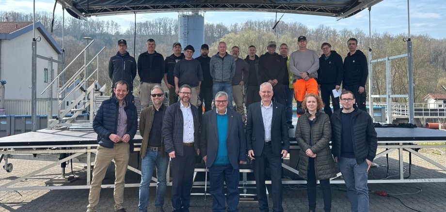 Auch Landrat Thorsten Stolz, Bürgermeister Tobias Weisbecker (Bad Orb) und Andreas Weiher (Wächtersbach), Bad Orbs Kurdirektor Steffen Kempa sowie Tim Schneider, Hauptamtsleiter der Stadt Bad Soden-Salmünster waren zum Liefertermin erschienen, um sich ein Bild von der Investition zu machen.